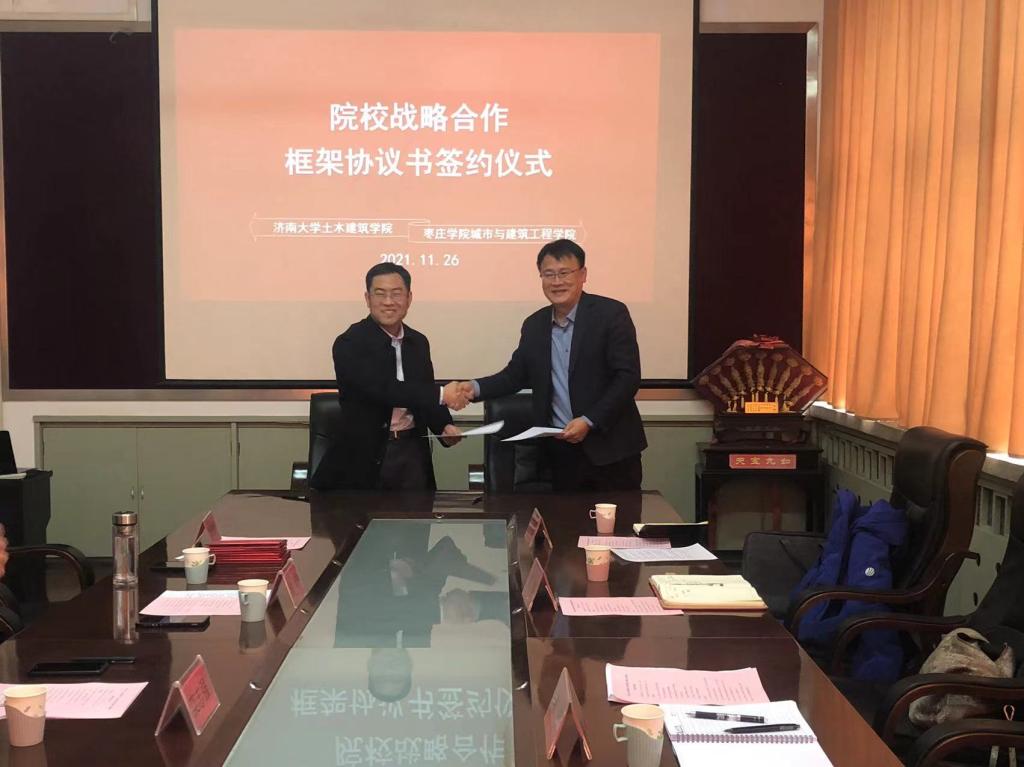 11月26日,beat365党委委员、统战部部长、beat365院长林勇一行4人赴济南大学土木建筑beat365考察学习并签订院校战略合作框架协议。副院长裘娜、院长助理孙启林、给排水专业负责人王昌稳参加了本次签约活动。