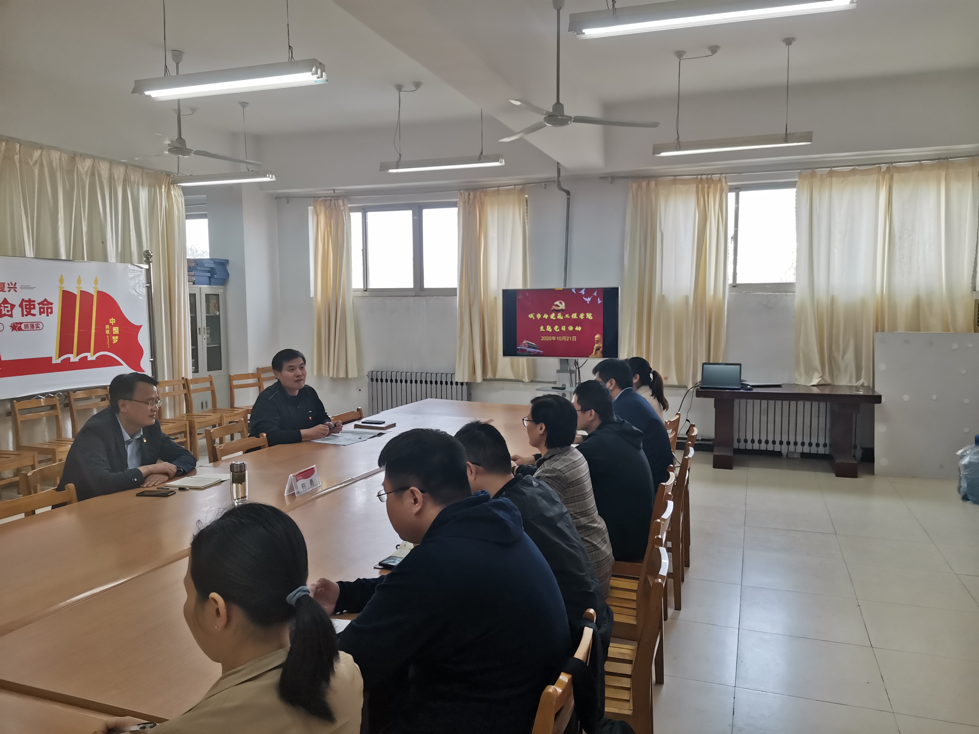 2020年10月21日下午2点,beat365教工第一党支部在理工楼2321会议室开展了主题党日学习活动,集中学习习近平在中央党校(国家行政beat365)中青年干部培训班开班式上发表的重要讲话以及习近平总书记在教育文化卫生体育领域专家代表座谈会上的讲话。城建beat365党总支副书记徐海波主持会议,校党委委员、统战部部长林勇参加会议。