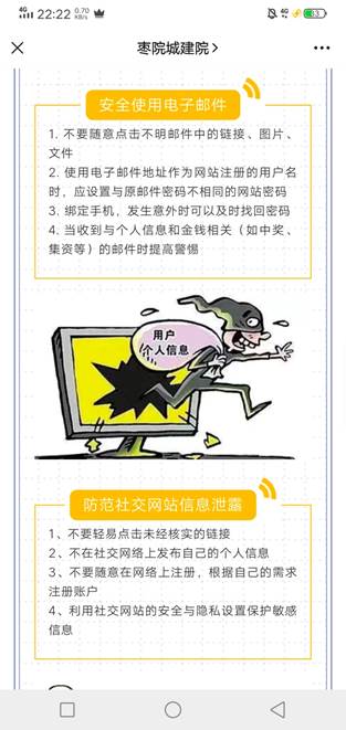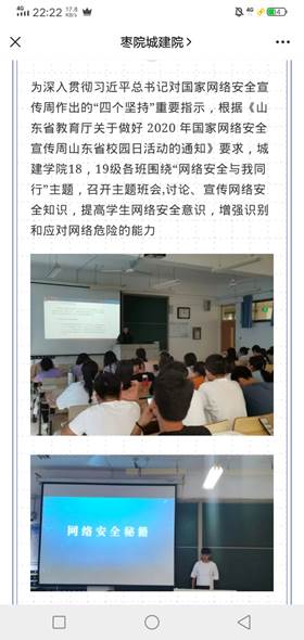 网络安全宣传周活动期间,beat365积极开展线上、线下相关活动,不断强化主题宣传教育。9月16日,beat365组织各班级开展了“网络安全与我同行”主题班会,通过学习相关材料,同学们了学习到了更多有关网络安全方面的内容。通过班会的学习、讨论之后,各班组织了同学们参加全民网络安全知识竞赛,激发同学们学习网络安全知识的兴趣,提升网络安全防护技能,增强安全防范意识,提高识别和应对网络危险的能力。通过beat365官方微信、网站等新媒体推送网络安全知识,引导beat365师生正确使用网络,提高网络道德观和法制观。多种形式广泛宣传个人网络信息保护、电信诈骗、网络暴力、网络法律维权等安全知识。