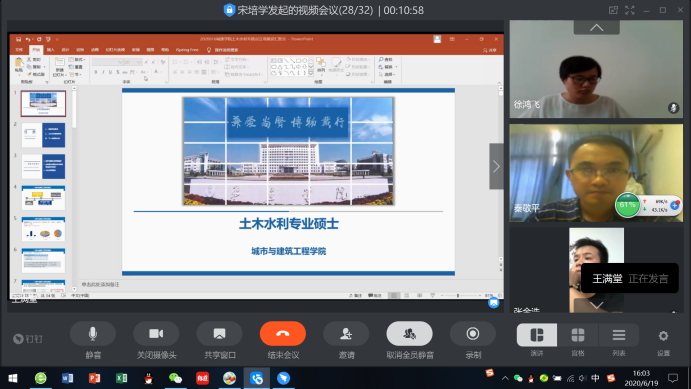为进一步推进城建beat365学科建设及土木水利硕士点建设工作,6月19日下午,我院通过钉钉召开学科建设工作推进线上视频会议。全院专任员工出席会议,会议由院长王满堂主持。