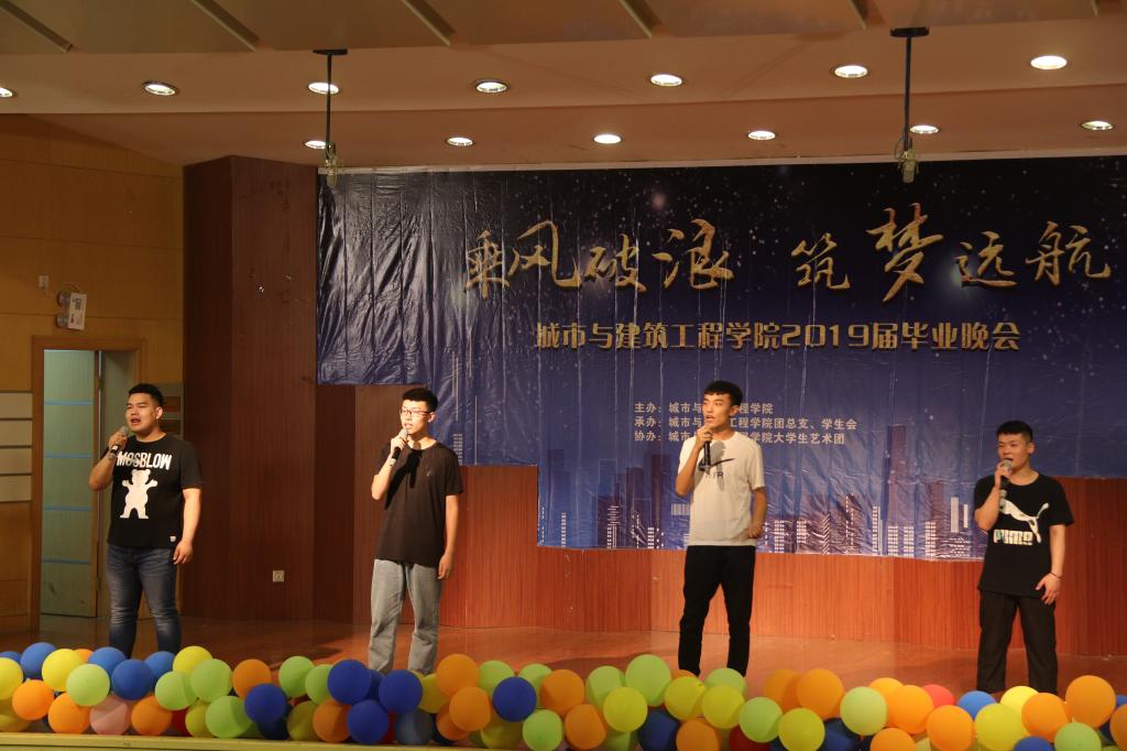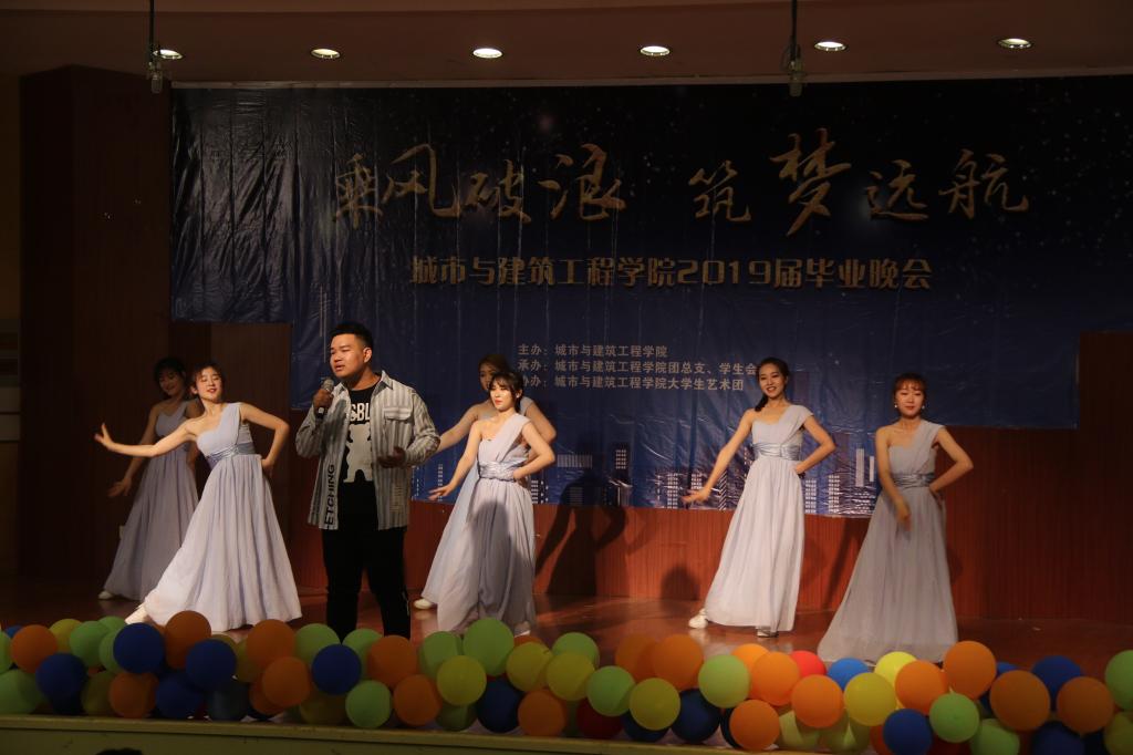 晚会以“乘风破浪,筑梦远航”为主题,活力四射的舞蹈《LATATA》拉开晚会的帷幕,城建beat365青年员工袁丹青用歌曲《最初的梦想》为毕业生送上祝福,随即掀起了晚会的高潮。2017级表演的小品《海阔天空》,在欢乐的气氛中,将大员工特有的朝气与活力表达的淋漓尽致。手语舞蹈《生僻字》《繁花》、歌曲《鼓楼》、歌曲串烧《那些花儿》《童年》《红日》、爵士舞《MONSRERS》等一次又一次掀起了晚会高潮。歌伴舞《凤凰花开的路口》及诗朗诵《走向远方》表达了对师哥师姐深深的祝福。2015级给排水带来的情景剧《在见青春》展示了毕业生几年来生活学习中的点点滴滴,抒发了枣院学子对母校的留恋与热爱。晚会通过微信上墙等形式与观众进行互动,整台晚会师生同台演出,体现了深深地师生情和同学情。最后,晚会在《毕业歌》的歌声中落下了帷幕。