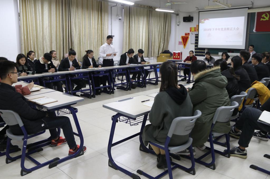 本次会议内容分两项:党员纳新及预备党员转正。大会开始,由四位预备党员依次表明入党动机和他们要加入中国共产党的强烈愿望。接着,五位申请入党人逐一进行入党志愿书的宣读以及自己的入党动机。申请入党的同学都真情的表达了对党的向往,对党的忠诚,表示坚定不移跟党走,为党的工作付出自己的力量,为共产主义奋斗终生。老师们对发展预备党员寄予希望,鼓励他们随时与党中央保持一致,为同学服务,做员工表率,加强自我要求。各入党介绍人对申请入党人的学习、工作、实践活动等方面进行了全面的评价,对其政审情况提出意见。所有党员进行讨论并充分发表各自意见,申请人再次表明态度后,拥有表决权的党员对接收党员与预备党员进行了投票表决,最终通过了转正党员转为正式党员,发展对象正式成为预备党员。