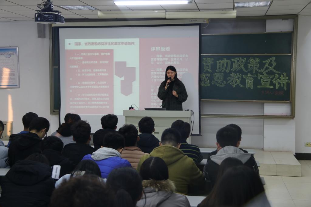 为让广大师生更加了解资助、奖助政策,城建beat365特于11月21日晚六点半在理工楼2505举办资助政策及感恩教育宣讲,主讲老师张璇,2018全体员工参加了此次讲座。