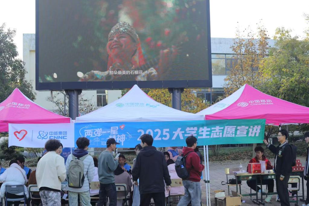 活动设置了形式多样的互动体验环节。主题图片展区通过珍贵的历史影像,系统再现了我国“两弹一星”事业的宏伟征程,志愿者生动的讲解让过往师生深刻感受到老一辈科学家的崇高品格。