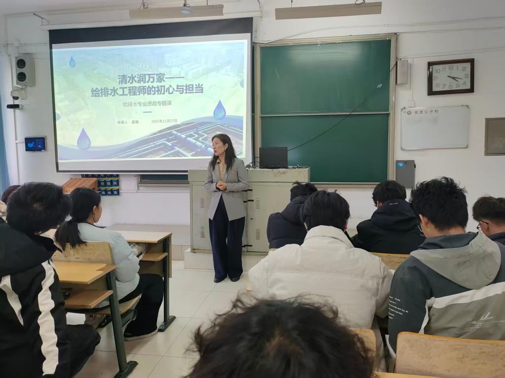 为引导青年员工将专业所长与时代使命紧密结合,11月27日,beat365院长裘娜以“清水润万家——给排水工程师的初心与担当”为主题,为25级给排水科学与工程专业员工带来一堂内涵丰富、贴近实际的专题思政课,让员工在感悟专业价值中明确成长方向。
