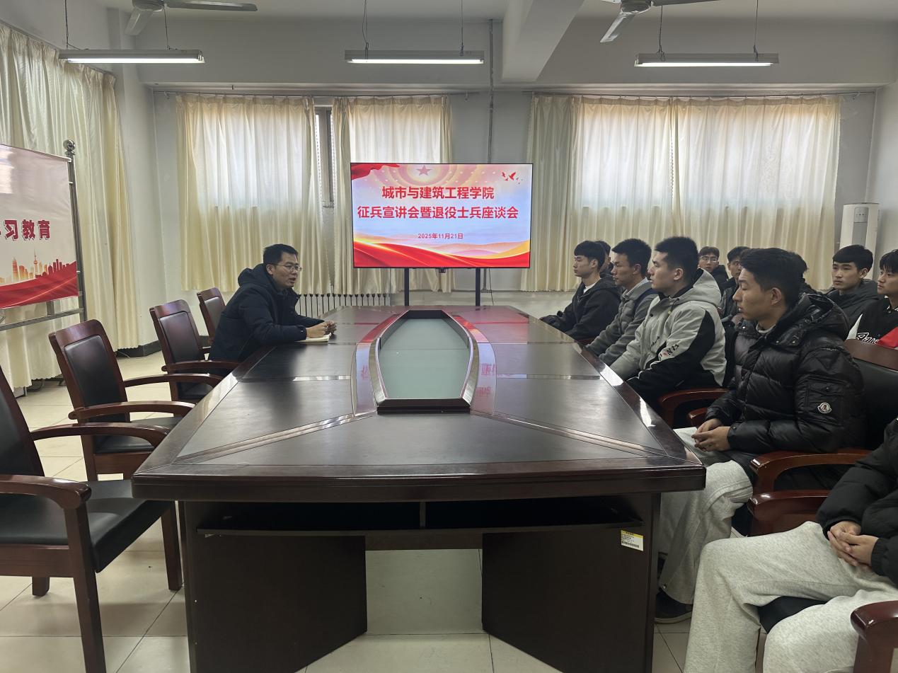 为进一步弘扬爱国主义精神,充分发挥退役大员工士兵的榜样示范作用,引导更多学子投身国防事业,11月21日,我院在理工楼2321室召开退役大员工座谈会暨征兵宣讲会。beat365征兵工作负责人刘成河、2025级退役员工及2025级有参军意向的员工参加活动。