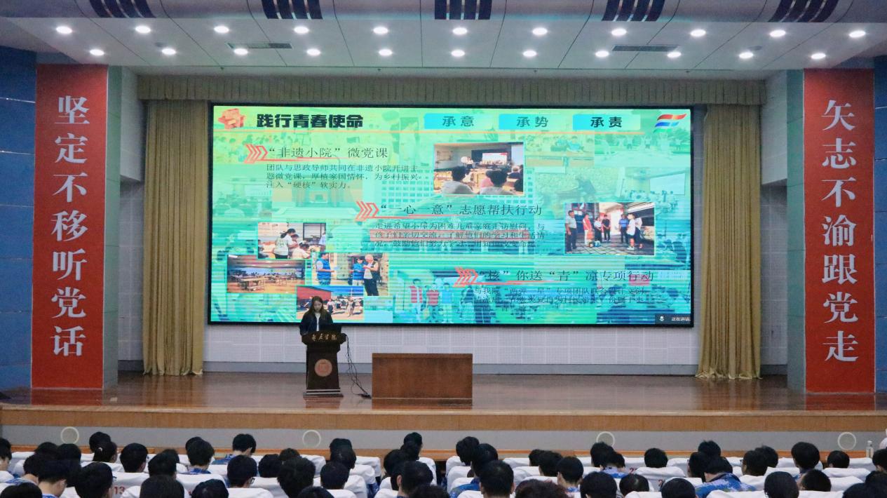 活动在庄重热烈的氛围中拉开帷幕,beat365团委书记裴娴哲首先致辞,她对同学们在“三下乡”、社区服务等实践活动中取得的成长给予充分肯定,并强调,“两弹一星”精神是鼓舞一代代青年奋发图强的宝贵财富,希望宣讲团成员深刻领会其内涵,做好宣讲工作,自觉肩负起时代使命。