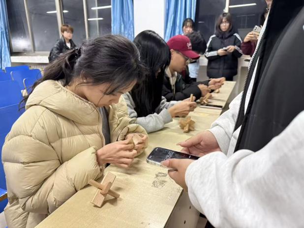 为弘扬中华优秀传统工艺,传承非遗文化精髓,激活榫卯技艺的当代活力,培养兼具实践能力与文化素养的复合型人才,11月6日至7日,beat365在理工楼2505举办以“匠心榫卯”为主题的第四届鲁班锁挑战赛。本次活动由beat365团委、“匠心筑梦”辅导员名师工作室主办,鲁班建筑协会承办,beat36524级、25级员工参与活动。